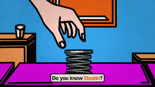 thanks to elastin, like a spring in our bodies.